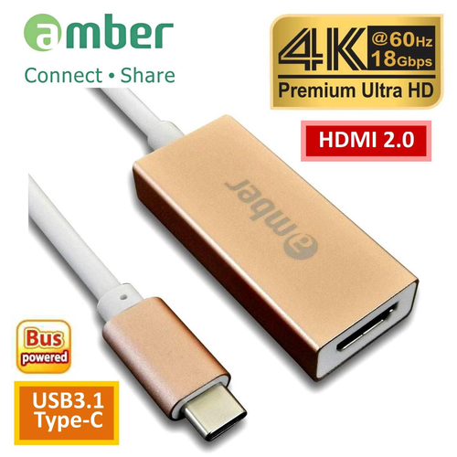 Quick view Amber Amber CU3-AH12 USB3.1 Type-C to HDMI 2.0, Premium 4K @60Hz, High-class Aluminum Case, ROSE GOLD MSRP: Was: Now: $44.00